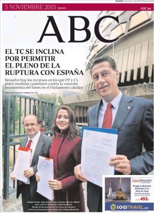 "El Tribunal Constitucional se inclina por permitir el pleno de la ruptura con España" señala en su portada ABC sobre una foto de Albiol, Arrimadas e Iceta a las puertas del alto tribunal. Una imagen que se repite en La Vanguardia aunque su titular está dedicado a Rajoy, quien, a su juicio, "no descarta ningún mecanismo legal para frenar la vía de la ruptura". Es decir, la utilización del artículo 155 de la Constitución. No opina lo mismo el catedrático de Derecho Constitucional de la Complutense, Javier García Fernández, quien firma una tribuna en El País en la que se explica cómo funciona lo que califica de "misterio" y de ahí que, concluya, "más vale cortar la rebeldía autonómica, antes que suspender la autonomía".