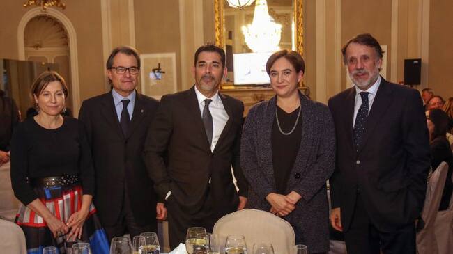 Víctor del Árbol, en el centro, junto a Carme Forcadell, Artur Mas, Josep Creuheras y Ada Colau ayer durante la recepción del Premio Nadal / Miquel Benitez (Getty Images)
