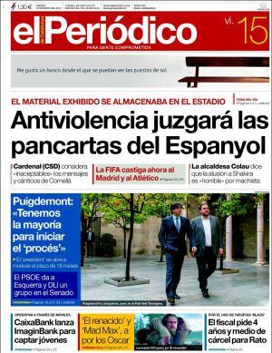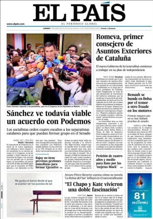 Y en Cataluña: "una de freda y una altra de calenta". Así, destaca El País, "Romeva, primer consejero de Asuntos Exteriores de Cataluña" pero, como precisa El Periódico, "el president se abre a modular el plazo de 18 meses" que se ha dado el Parlament para sacar adelante el "procés".