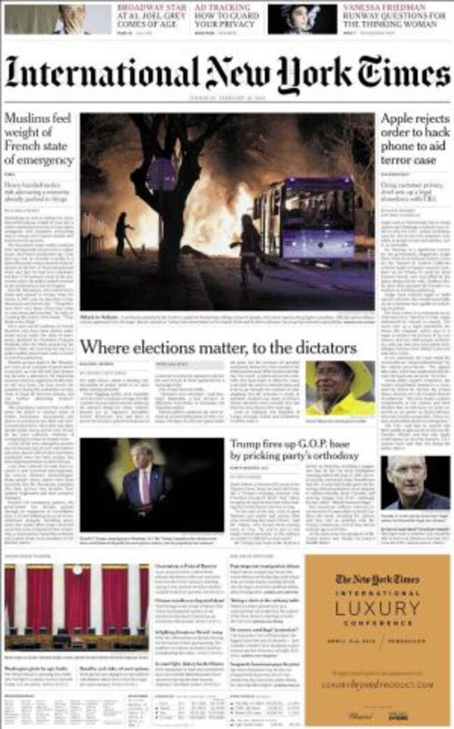 "Siempre con la libertad" es el título de un extenso artículo de opinión que el Presidente del Gobierno en funciones firma en El País con motivo del segundo aniversario del encarcelamiento del líder opositor venezolano Leopoldo López. Pero Rajoy no desaprovecha la ocasión para arremeter contra un pacto entre PSOE y Podemos. De manera retórica se pregunta: "¿Podemos tener un autoproclamado candidato a vicepresidente de Gobierno que no condenó la represión... de la oposición en Venezuela? ¿Puede plantearse el PSOE pactar con quien, cuando era eurodiputado, votó en contra de la petición de excarcelación de López?... Y concluye: "la política exterior de un demócrata antepone los valores a los intereses". Según anuncia La Razón en su apertura, "si el PSOE pacta con Podemos, el líder popular cree que podría encabezar la oposición una legislatura contra con un Gobierno débil y pilotar la transición del PP".