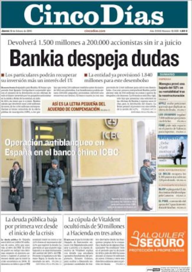 Hay práctica unanimidad en los diarios a la hora de evaluar esta decisión como una salida razonable para la entidad. Para Cinco Días es "una solución para encarar el futuro". Para los minoritarios, señala El País, se plantean dos dudas a evaluar: el bajo interés que les ofrece la entidad por el tiempo transcurrido -el 1% cuando debería ser el 3- y la liquidación de las costas por los trámites legales iniciados. El Mundo cree que sólo queda esperar que por la vía penal se depuren responsabilidades.