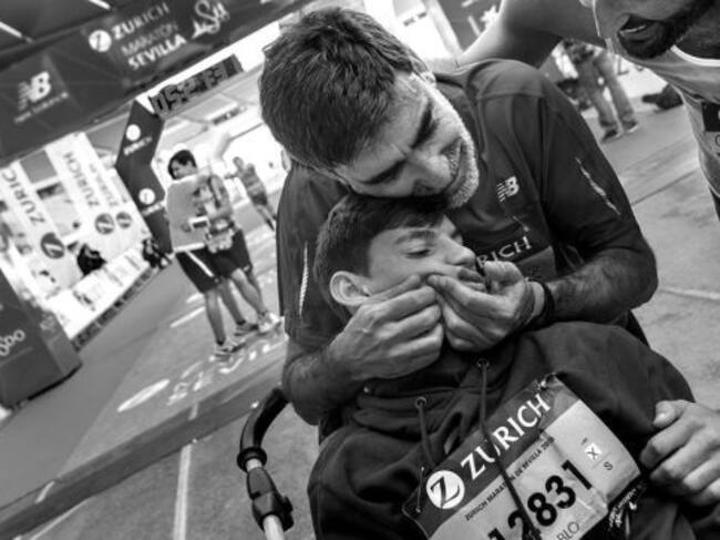 José Manuel Roás nos cuenta cómo correr maratones con su hijo logró provocarle una sonrisa. Su hijo se llama Pablo y padece el síndrome de West, una enfermedad que le tiene postrado en una silla de ruedas.