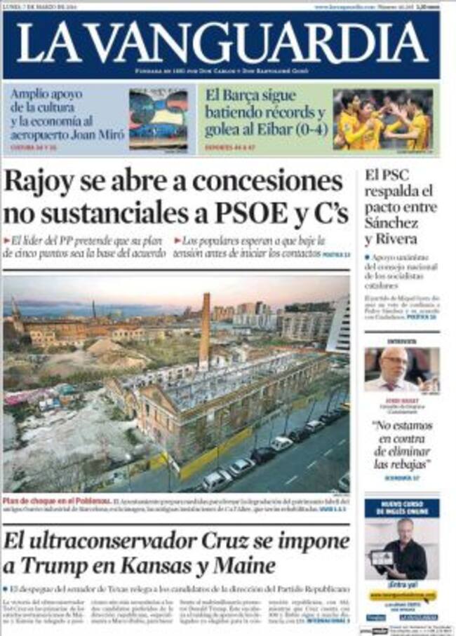 El PSOE va a ser "muy exigente" con los alcaldes de Podemos a los que dio su apoyo sin pedir nada a cambio. "Esta será una de las formas de presión del PSOE al partido de Pablo Iglesias para que reconsidere su negativa a facilitar que gobierne Pedro Sánchez", explica El País que también constata que Podemos está intensificando la oposición a los socialistas en los gobiernos regionales que facilitaron con su voto. Entre tanto, en Moncloa parecen satisfechos. Un sondeo para La Razón arroja que "Rajoy sale reforzado de la investidura" porque, en caso de nuevas elecciones: "PP y Ciudadanos -los únicos que subirían- se quedarían a dos diputados de la mayoría".