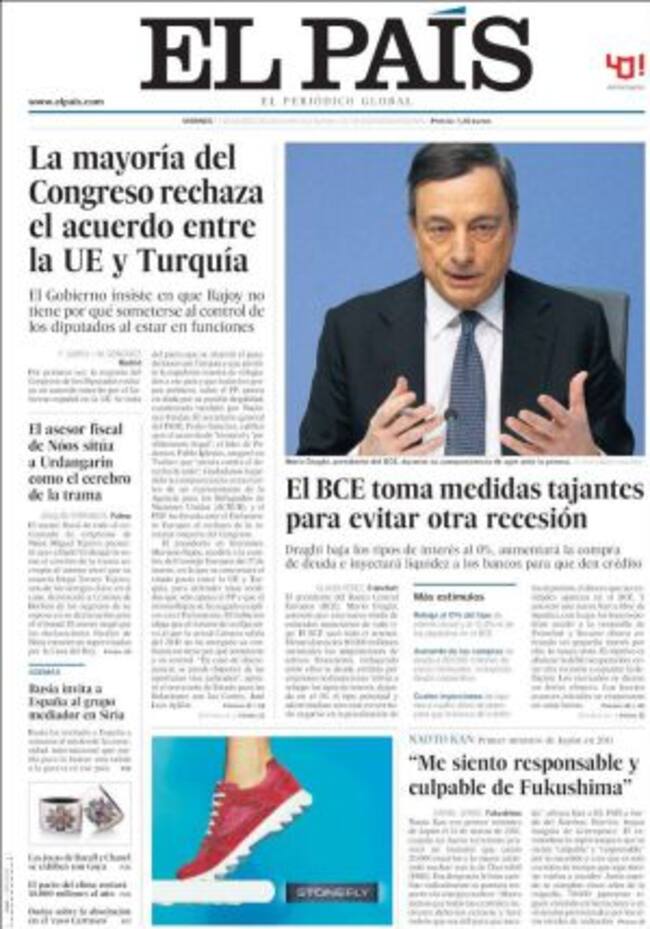 El rostro de Mario Draghi encarna esta mañana a la política económica de la Unión Europea. Las medidas adoptadas por el Banco Central Europeo no dejan a nadie indiferente aunque no todos confían en su verdadera eficacia