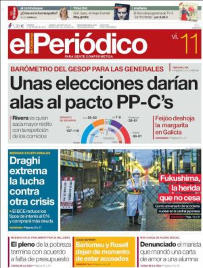 Con una polémica de calado porque "el gobierno insiste en que Rajoy no tiene que someterse al control de los diputados por estar en funciones". Se trata, como denuncia El País en un editorial, de un "Gobierno sin control" porque "el Ejecutivo en funciones tiene que seguir ocupándose de los asuntos públicos y, naturalmente, el Parlamento ha de conocer y debatir el porqué de sus decisiones por mucho que nadie haya previsto una interinidad tan larga". Por cierto que la interinidad podría prolongarse porque, si nos atenemos al barómetro que hoy publica El Periódico,"una elecciones darían alas al pacto PP-Ciudadanos" pero tampoco les garantizarían la mayoría suficiente.