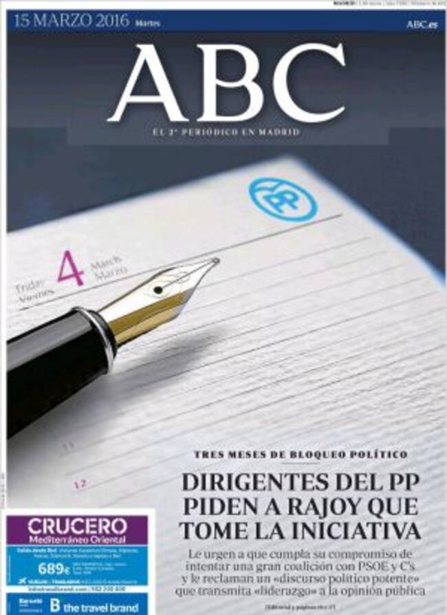 El historiador Santos Juliá reflexiona en El País sobre "las políticas del No" desplegadas por el Partido Popular y por Podemos en el debate de investidura cuando "si Rajoy e Iglesias dejaran gobernar dispondrán de tiempo suficiente el uno para una profunda renovación del Partido Popular y el otro para la consolidación de Podemos como un partido para la democracia". Sin embargo, los titulares de esta mañana dificultan esta evolución. Leemos en ABC, sus dirigentes "piden a Rajoy que tome la iniciativa" para cumplir con su objetivo de intentar una gran coalición con PSOE y Ciudadanos. Es decir, se propugna la continuidad de Rajoy que, a juicio de Ignacio Camacho, a quien más beneficia es a Rivera porque "un PP renovado dejaría a Ciudadanos sin parte de su razón de ser". De momento, según El Mundo, ya se ha cobrado su primera víctima porque el eterno delfín de Rajoy, Alberto Núñez Feijóo, reflexiona sobre su retirada de la política por haber agotado su ciclo en Galicia y no poder dar el salto a la política nacional sin levantar suspicacias.