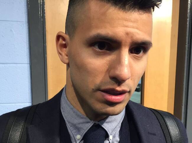 Agüero, en la zona mixta del Etiham Stadium / ANTONIO FUENTES