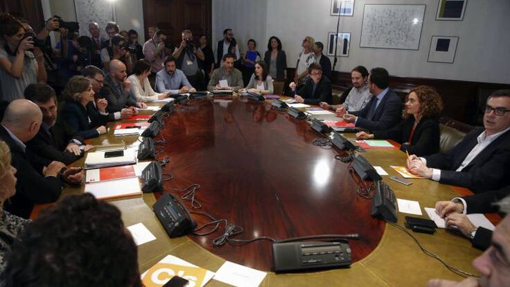 Se han sentado a la mesa tres meses y medio después de las elecciones. Hasta ahora dos de los interlocutores, Podemos y Ciudadanos, no han dejado de airear su incompatibilidad. O unos o los otros, pero juntos no. La reunión de hoy había levantado mucha expectación, la que produce lo que parece ser el último cartucho para que Pedro Sánchez pueda ser investido presidente del gobierno.
