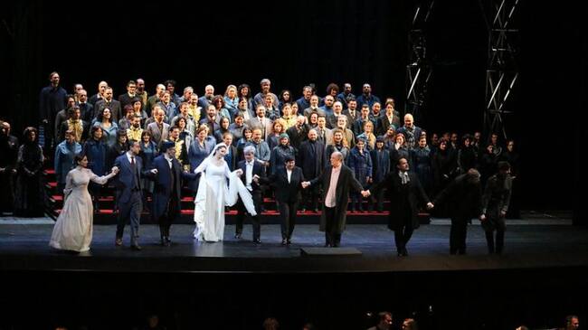 Saludo final de los interpretes de la ópera “Simon Boccanegra” / Twitter Liceu (@Liceu_cat)