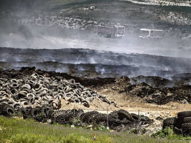 Labores de extinción en el cementerio de neumáticos de Seseña / EFE (EFE)