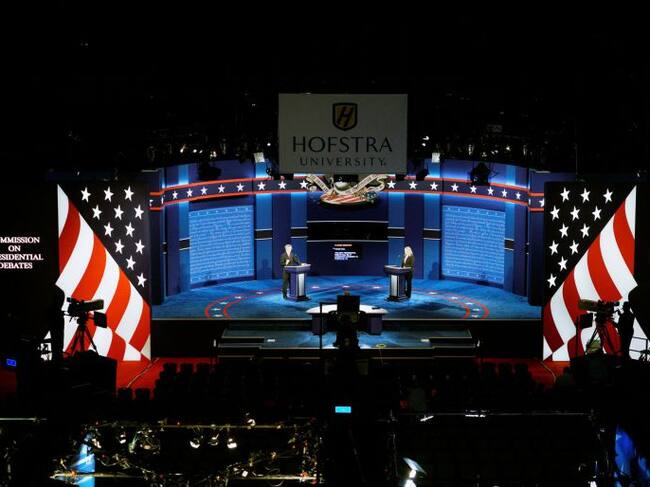 Todo preparado en el escenario de la Hofstra University in Hempstead, New York, para el debate presidencial de esta noche / RICK WILKING (Reuters)
