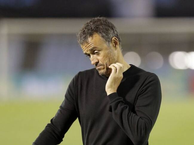 El entrenador del FC Barcelona, Luis Enrique, abandona el terreno de juego al término de la primera parte durante el partido de Liga en Primera División ante el Celta que están disputando esta noche en el estadio de Balaídos, en Vigo. EFE/Lavandeira jr / Lavandeira jr (EFE)