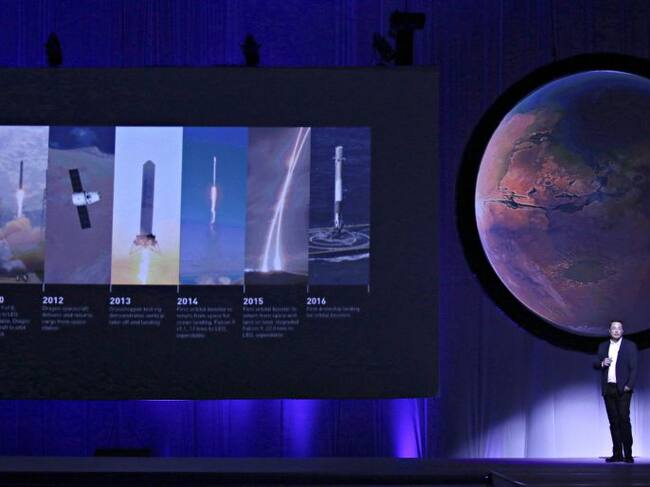 El multimillonario estadounidense Elon Musk presenta su plan para colonizar Marte, el planeta al que llegará el 19 de octubre una sonda espacial lanzada por Europa y Rusia. / STRINGER (Reuters)