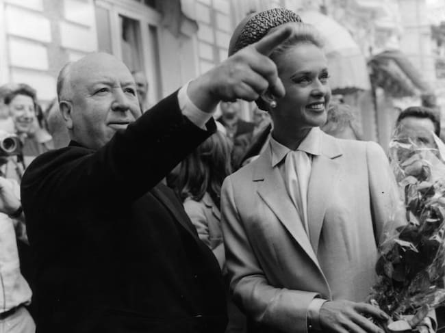 Alfred Hitchcock junto a Tippi Hedren tras la premiere de su thriller "The Birds" / GETTY IMAGES