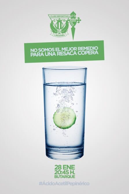 Si por algo se caracteriza el CD Leganés es por ser el equipo de Primera que hace los carteles más originales y atractivos para anunciar sus partidos en Butarque. por eso, si queréis ganar dos entradas para ver el Leganés-Celta (Sábado 28 enero, 20:45) os vamos a pedir que emuléis a los creadores de carteles del 'Lega'.