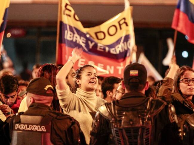 Un grupo de ecuatorianos protesta en las afueras del Consejo Nacional Electoral, hoy domingo 19 de febrero de 2017, a la espera de los resultados de los comicios generales en Ecuador, en Quito (Ecuador). / José Jácome (EFE)