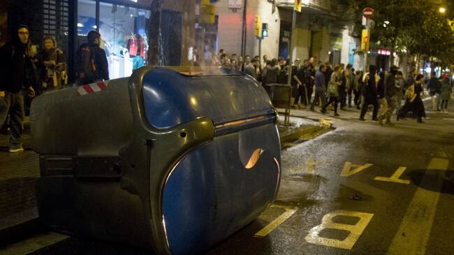 Choque entre manifestantes y policías en el barrio de Gracia, en Barcelona, tras el desalojo un edificio que pertenecía a un banco, el 25 de mayo de 2016. / Getty Images