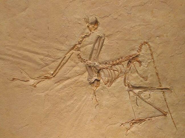 El fósil de un Archaeopteryx, un ave primitiva con caracteres intermedios entre los dinosaurios emplumados y las aves modernas.(Cadena SER)