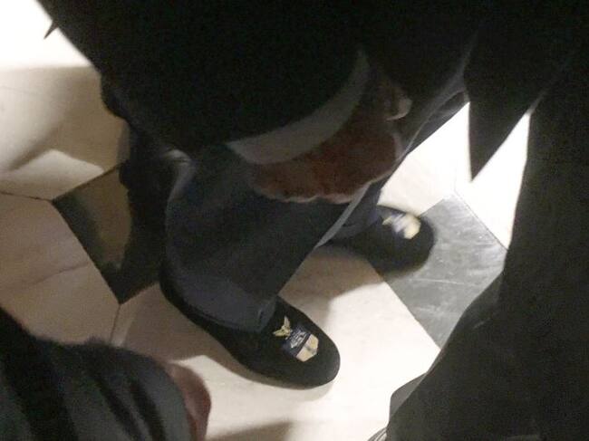 Las pantuflas del secretario de Comercio nortemaericano, Wilbur Ross, en el Capitolio. / Haley Byrd / @byrdinator