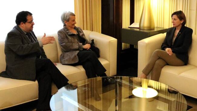 El coordinador del Pacte Nacional pel Referèndum, Joan Ignasi Elena, junto a la exconsellera de la Generalitat, Carme Laura Gil, y la presidenta del Parlament, Carme Forcadell, durante una reunión la semana pasada / Núria Julià (ACN)