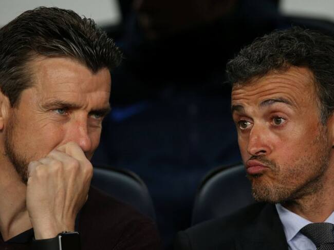 Luis Enrique charla con Unzué en el banquillo del Barça / ALBERT GEA (Reuters)