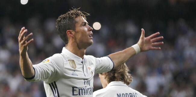 Cristiano Ronaldo celebra su doblete ante el Sevilla / Ángel Díaz (EFE)
