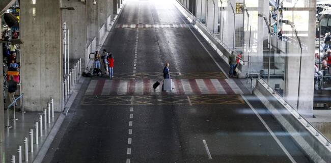El servicio de taxis en el aeropuerto madrileño de Barajas es hoy inexistente como consecuencia de la huelga que han convocado los profesionales del sector entre las 06:00 y las 18:00 horas. / Emilio Naranjo (EFE)
