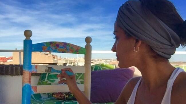 Inma Cuesta con su silla personalizada para el Día Internacional del Refugiado. / Pinterest