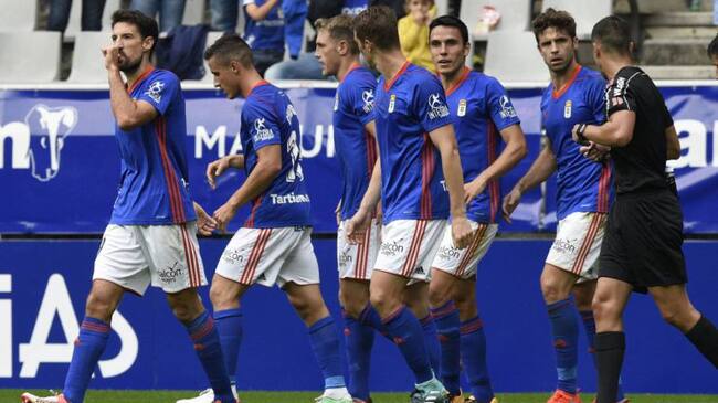 Los jugadores del Oviedo celebran un gol