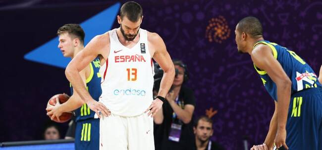 Marc Gasol, en la derrota de España ante Eslovenia en el Eurobasket. / TOLGA BOZOGLU (EFE)