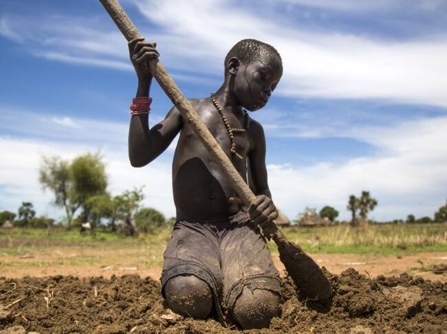 Un niño de 13 años cultiva la tierra en Sudán del Sur(Getty Images)