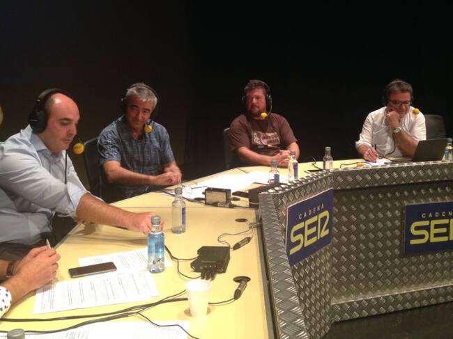 (de izq. a dcha.) Isaías Lafuente, Juan Carlos Gracia, Carles Francino, Mela Chércoles y Rafael Vilasanjuan en Alcañiz / Cadena Ser