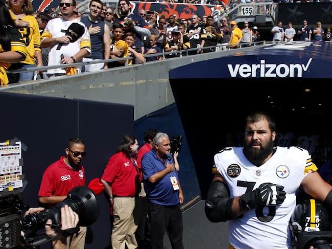 Alejandro Villanueva participó en la ceremonia del himno, algo que sus compañeros no hicieron como crítica a Trump