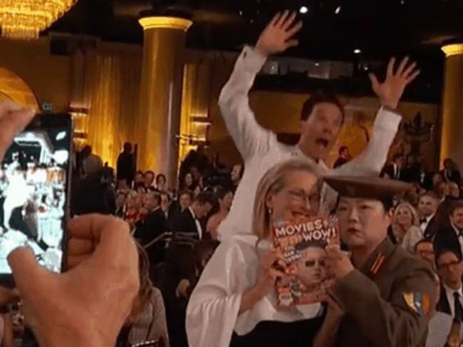 El famoso 'photobomb' de Benedict Cumberbatch a Meryl Streep. / GOLDEN GLOBES