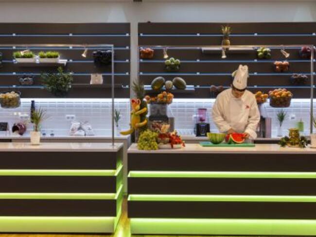 No se puede olvidar el Show Cooking, ahora, totalmente renovado, o para los que buscan una alimentación cien por cien saludable, la estación más healthy, que se puede combinar con el Fitness Center. Con este nuevo concepto gastronómico, el hotel da un paso más en su empeño por adecuarse a las exigencias de sus huéspedes. Esta reforma se suma al resto de obras de adecuación culminadas en el hotel según los estándares de calidad de la Marca Marriott y que ha supuesto una inversión total de más de 40 millones de euros.