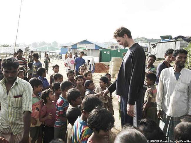 Este verano, cuando se ha cumplido un año de las terribles matanzas contra los roghinya en Myanmar, Gasol ha visitado los campamentos de roghinya de Leda y Kutupalong, en la zona de Cox Bazar, en la costa sureste de Bangladesh. Kutupalong es el campamento de refugiados más grande del mundo, y acoge a más de un millón de personas. Gasol es embajador de buena voluntad de UNICEF desde hace 15 años, y cuenta que vuelve de este viaje impresionado por el calor, la humedad y la precariedad en la que viven cientos de miles de personas, en campamentos construidos sobre suelos de arcilla que corren un peligro constante de deslizamiento de tierras. Llega también muy impresionado por el mensaje contradictorio de los niños, porque por un lado demuestran su enorme vitalidad pero al mismo tiempo sobreviven instalados en vidas provisionales. Gasol destaca que los niños roghinya de 12 a 18 años, por ejemplo, no tienen acceso a ningún tipo de educación secundaria, y eso supone perder a toda una generación desde el punto de vista formativo.
