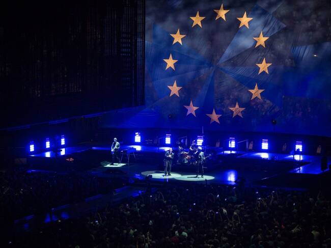 El grupo irlandés muestra en sus conciertos la bandera estrellada de la Unión en un momento en el que la unidad de los 27 brilla por su ausencia