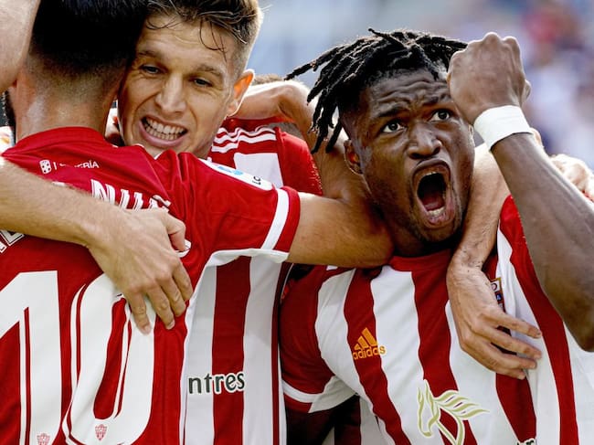 La plantilla de la UD Almería celebra un gol en la Liga Smartbank. / Getty Images