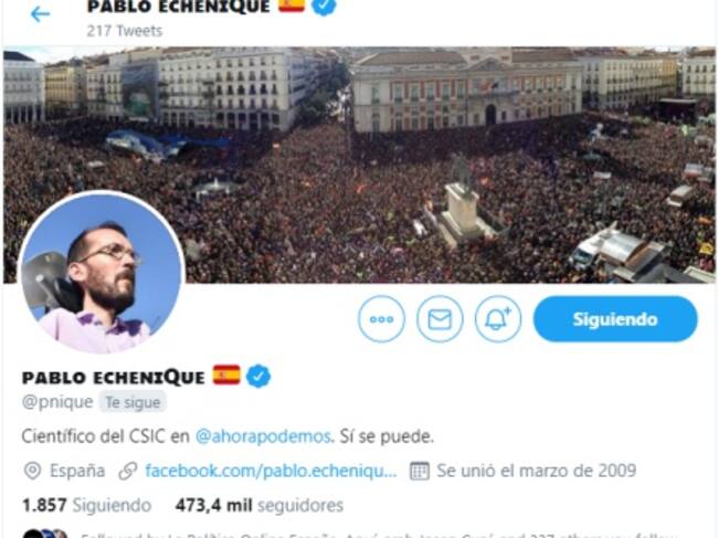 Pablo Echenique hace limpieza en su cuenta de Twitter