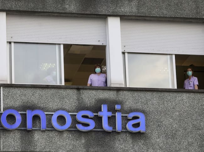 Varias sanitarias se asoman a las ventanas del Hospital Donostia en San Sebastián / Javi Colmenero - Europa Press (EUROPA PRESS)