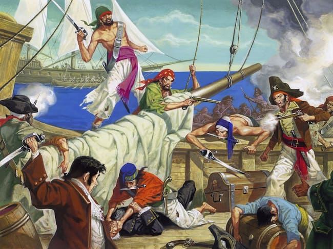 Ilustración de piratas saqueando un barco / Getty Images