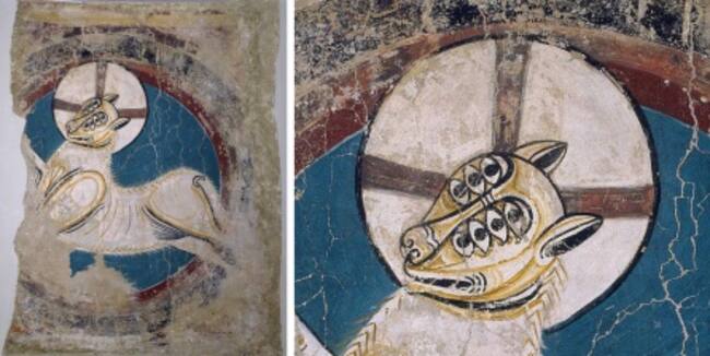En la pintura mural románica la idea del ojo está muy presente en los dos sentidos: conceptual y formal, abstracto y concreto. El ojo es la forma de la almendra de la mandorla, pero también se multiplica en las alas de los querubines y en los cuerpos de los animales del tetramorfo.