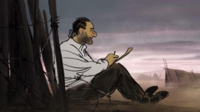 Casi medio millón de españoles se vio obligado a huir del franquismo, la mayoría de ellos, se exilió por la frontera catalana con Francia… Machado fue uno de ellos, pero hay miles y miles de nombres y rostros anónimos. También huyo Josep Bartolí un dibujante y pintor catalán, que había luchado en la guerra y que acabó en un campo de concentración francés. Su vida y obra la rescata ahora el cine francés, concretamente otro dibujante, Aurel, que conoció la historia de Bartolí y su apasionante vida y quiso llevarla a la gran pantalla, pero siempre con la animación como vehículo para contar la historia.