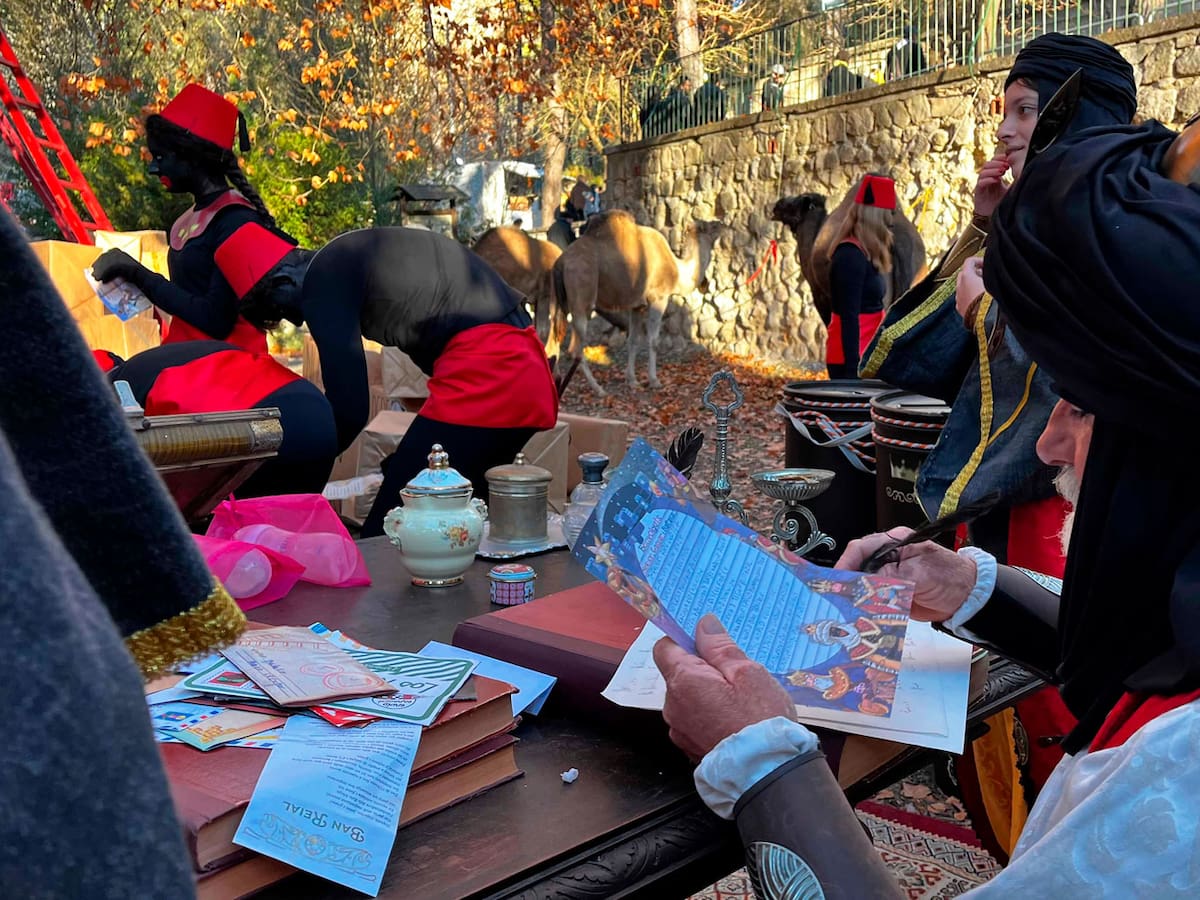 Melchor, Gaspar y Baltasar completan un recorrido ágil y los 'pajes negres' han repartido los paquetes casa por casa ante la imposibilidad de subir a los balcones con las tradicionales escaleras rojas