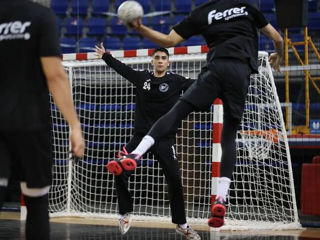 El portero, Jorge Clavijo, en un entrenamiento con el Ciudad de Logroño de balonmano. / BM Ciudad de Logroño