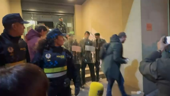 Los concejales del Ayuntamiento de Nájera salen escoltados por la Guardia Civil