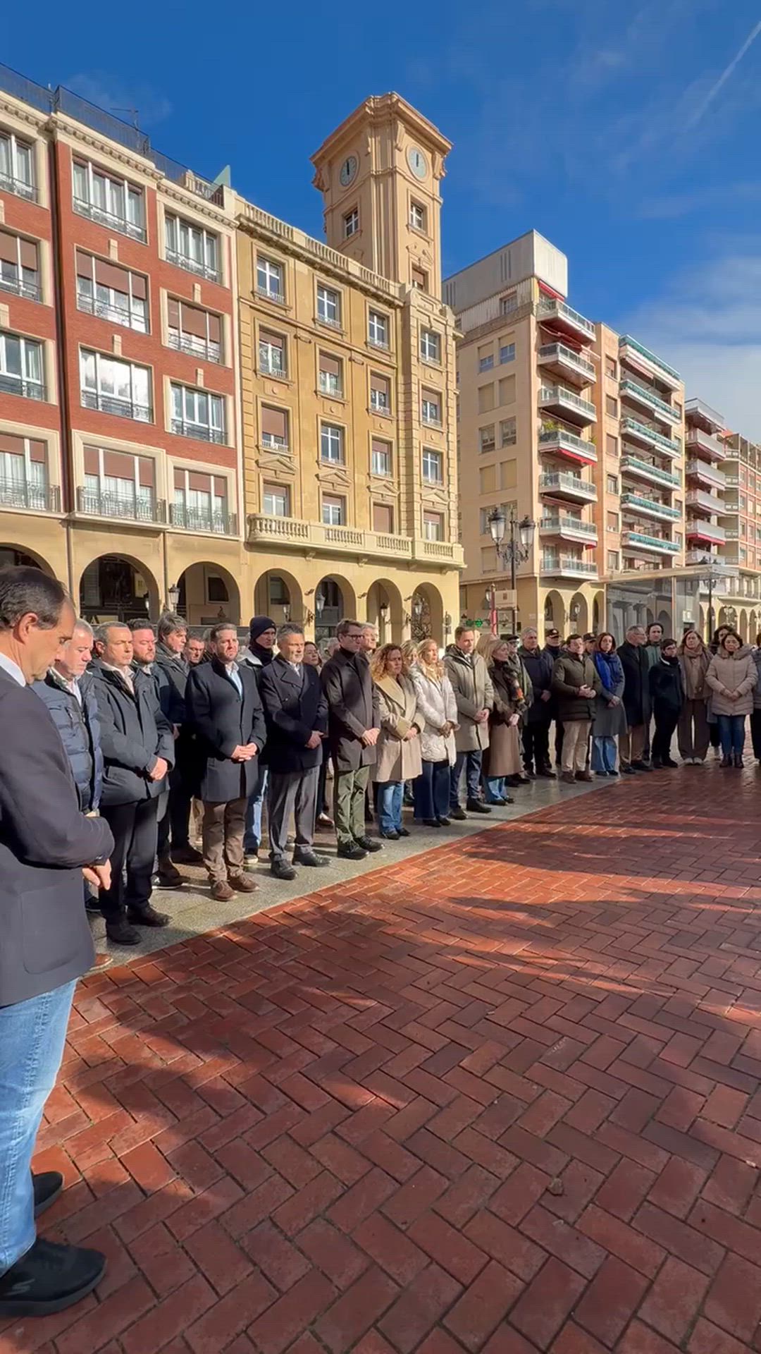 Una concentración encabezada por la delegada del Gobierno en La Rioja, Beatriz Arraiz; el presidente del Gobierno de La Rioja, Gonzalo Capellán, la presidenta del Parlamento, Marta Fernández, además del alcalde de Logroño, Conrado Escobar, y otras autoridades regionales y municipales, además de algunas personas que se han acercado a titulo personal.