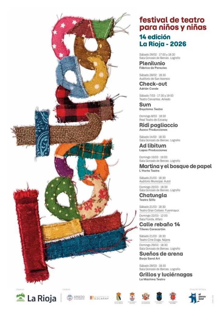 Al día siguiente, domingo 22 de marzo, ‘Calle rebaño 14’ llegará a la Sala Florida de Alfaro en sesión matinal, a las 12 horas, mientras que ‘Chatungla’ se representará en la Sala Gonzalo de Berceo de Logroño a las 18:30 horas. El tramo final del festival incluirá ‘Grillos y luciérnagas’, de La Machina Teatro, el sábado 28 de marzo a las 18:30 horas en la Sala Gonzalo de Berceo, una propuesta poética que invita a adentrarse en el universo de la noche; y culminará el domingo 29 de marzo, a las 18:30 horas y en el mismo espacio, con una nueva función de ‘Sueños de arena’.