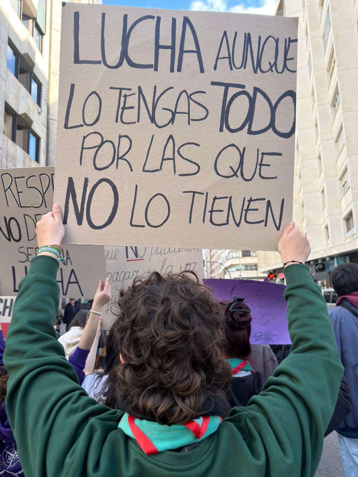 Los asistentes, que han disfrutado de una soleada mañana, han portado carteles como 'Dice Mercurio que el retrógrado eres tú', 'Girl power', 'Juntas contra el odio. Ni un paso atrás', 'Que ser mujer no cueste la vida' y '8M nos queremos vivas' y han coreado consignas a favor del feminismo.