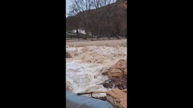 Uno de los caminos por los que pasa el agua está a 50 metros de las viviendas de Valdegutur, donde apenas una decena de familias miran al agua sin preocupación pero aún con la incertidumbre de cuándo se normalizará la situación.
